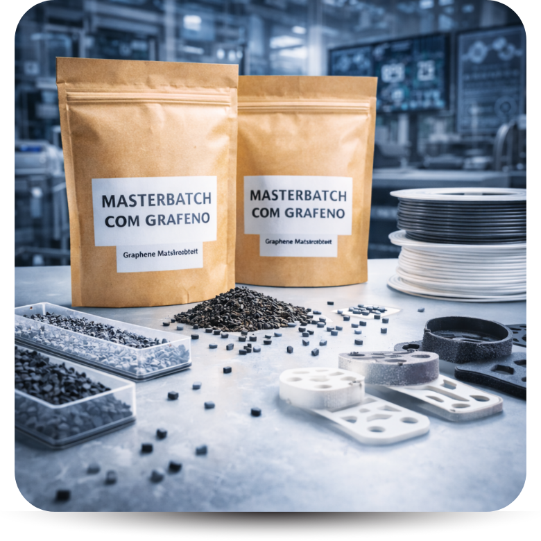 O masterbatch com grafeno é uma solução pronta para uso, desenvolvida especialmente para indústrias plásticas e de compósitos. Ele permite a incorporação uniforme do grafeno no processo produtivo, facilitando a aplicação e garantindo resultados consistentes.